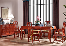 | 凤戏牡丹餐桌+凤戏牡丹玻璃柜 | 凤戏牡丹床+凤戏牡丹梳妆台 |